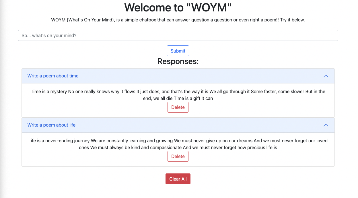 WOYM(what's on your mind) is a fun app that can return a quick fact,